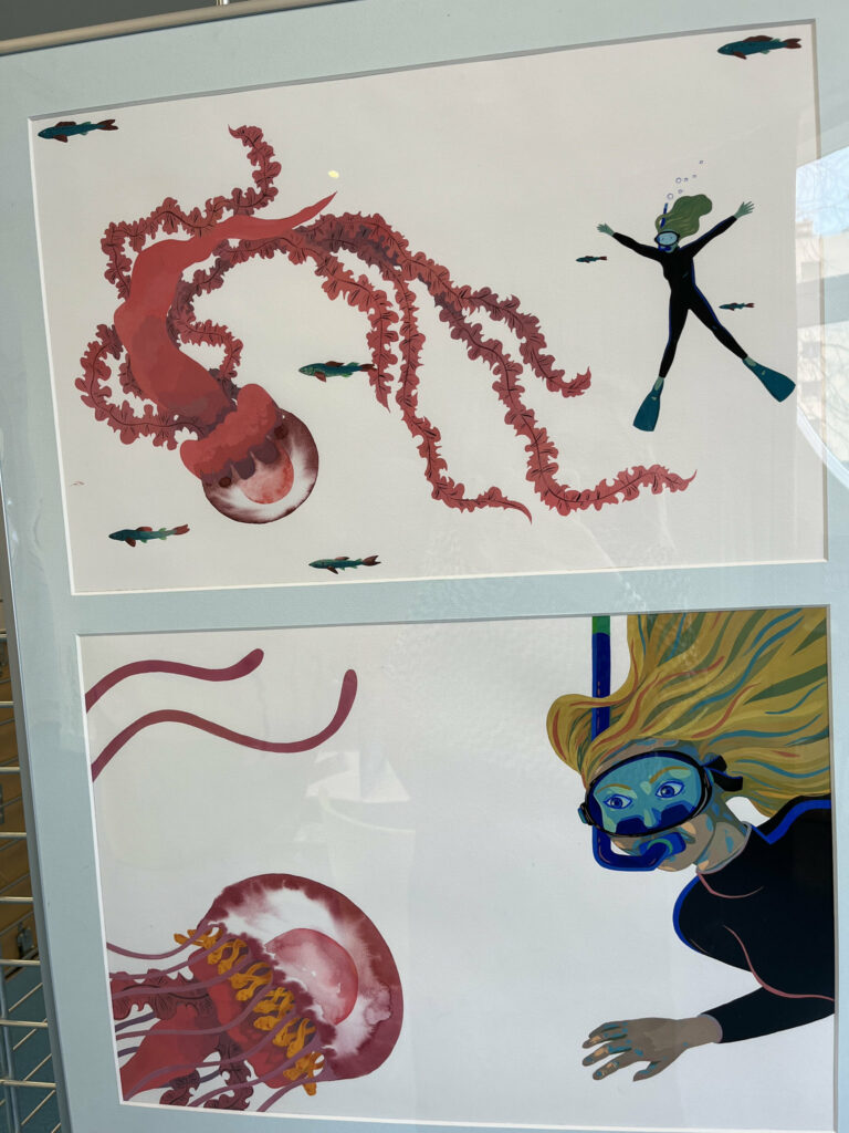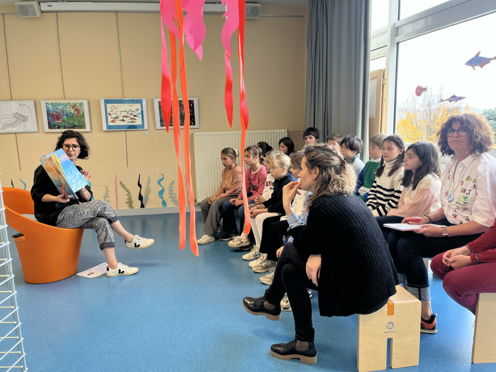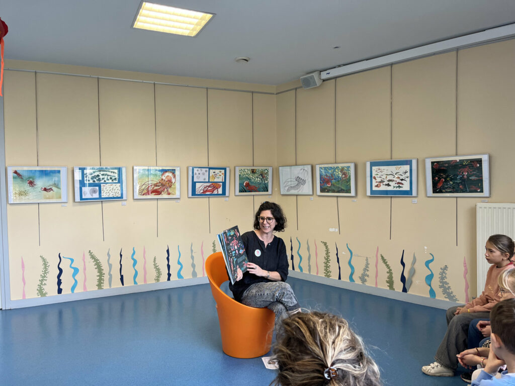 Ce jeudi 6 novembre, les CMB ont été accueillis à la Bibliothèque de Sainte-Foy-Lès-Lyon pour une animation consacrée aux œuvres de l’illustratrice Alexandra Huart, plus particulièrement au livre « Je suis une méduse ».