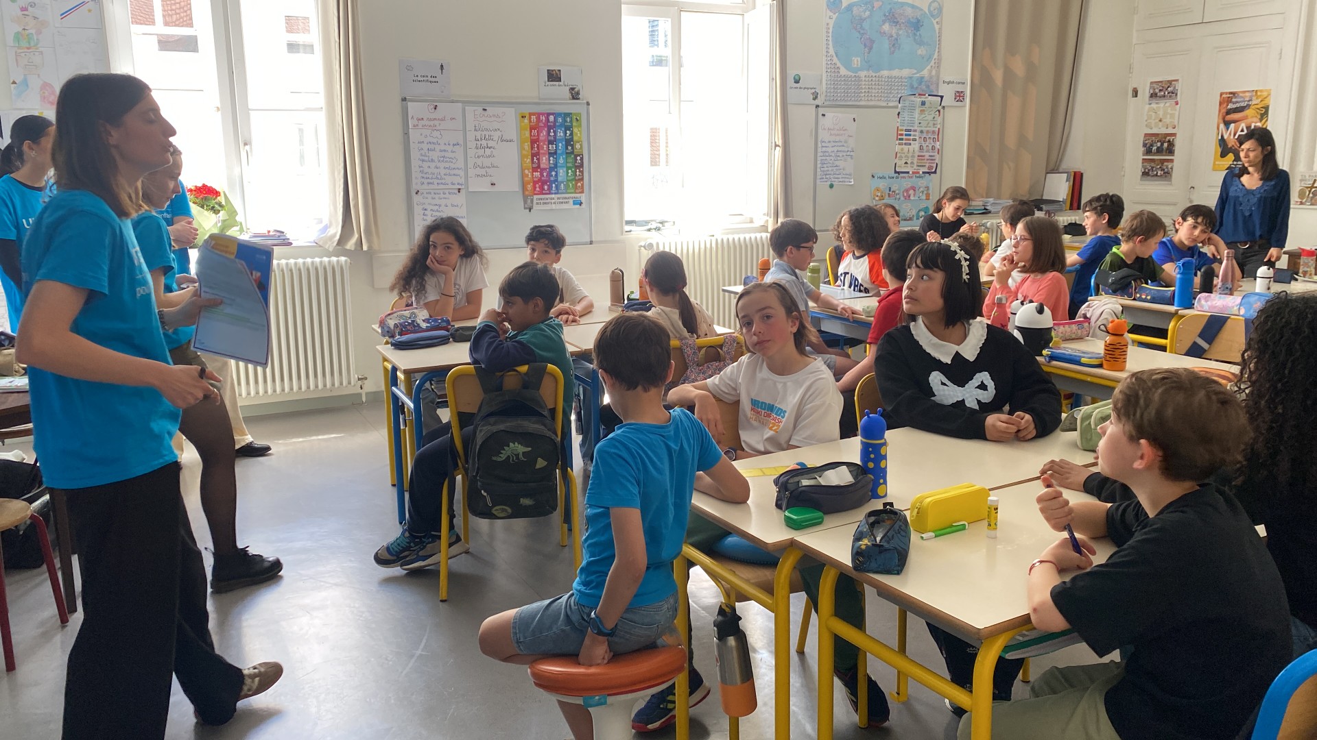 Dans le cadre du prix littéraire de l’UNICEF auquel toutes les classes participent, les élèves de CM ont eu la joie d’accueillir un groupe de bénévoles qui sont intervenus en classe.